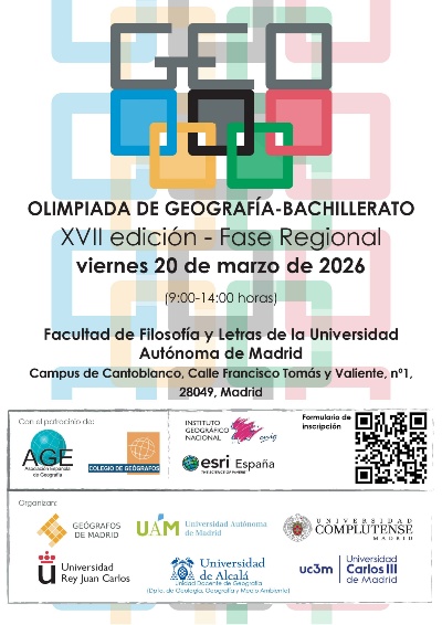 Convocatoria de la XVIIª edición de la fase regional de Madrid de la Olimpiada de Geografía, que tendrá lugar el viernes 20 de marzo de 2026, en la Facultad de Filosofía y Letras de la Universidad Autónoma de Madrid.